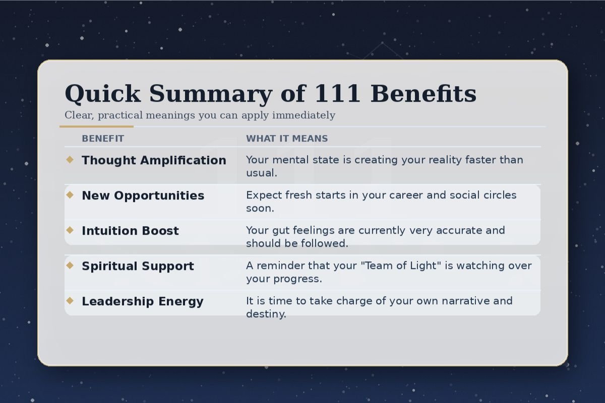 Quick Summary Of 111 Benefits